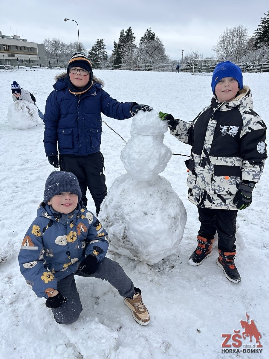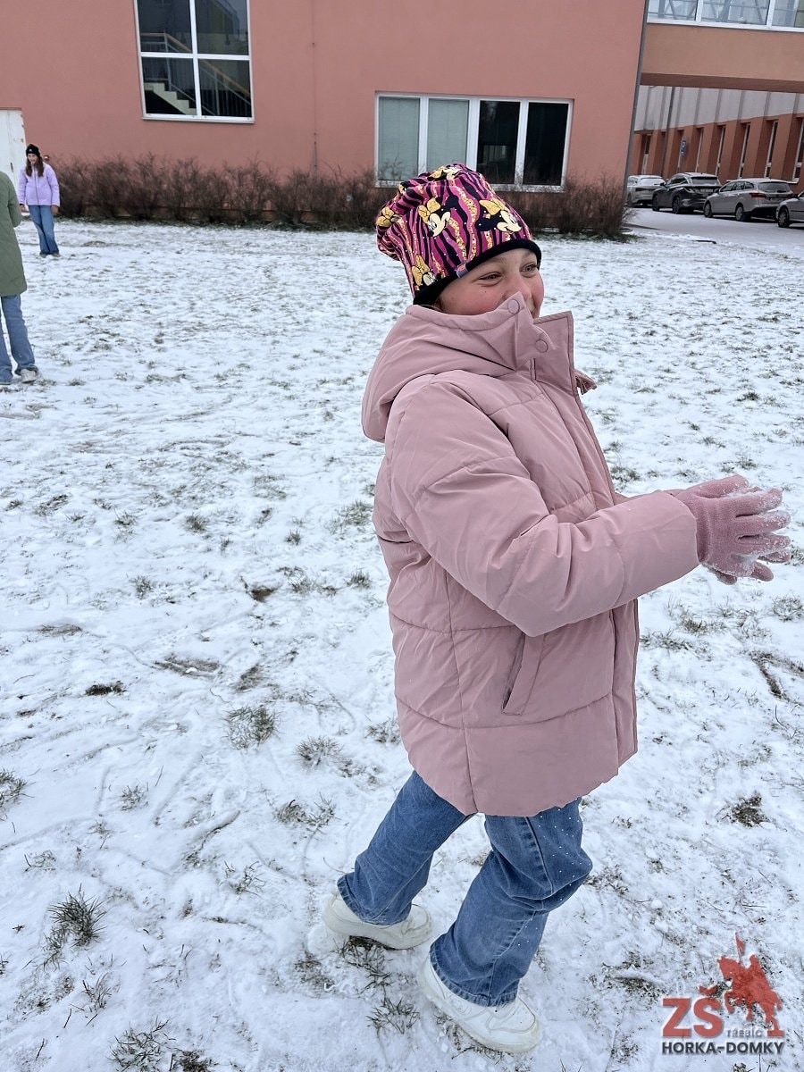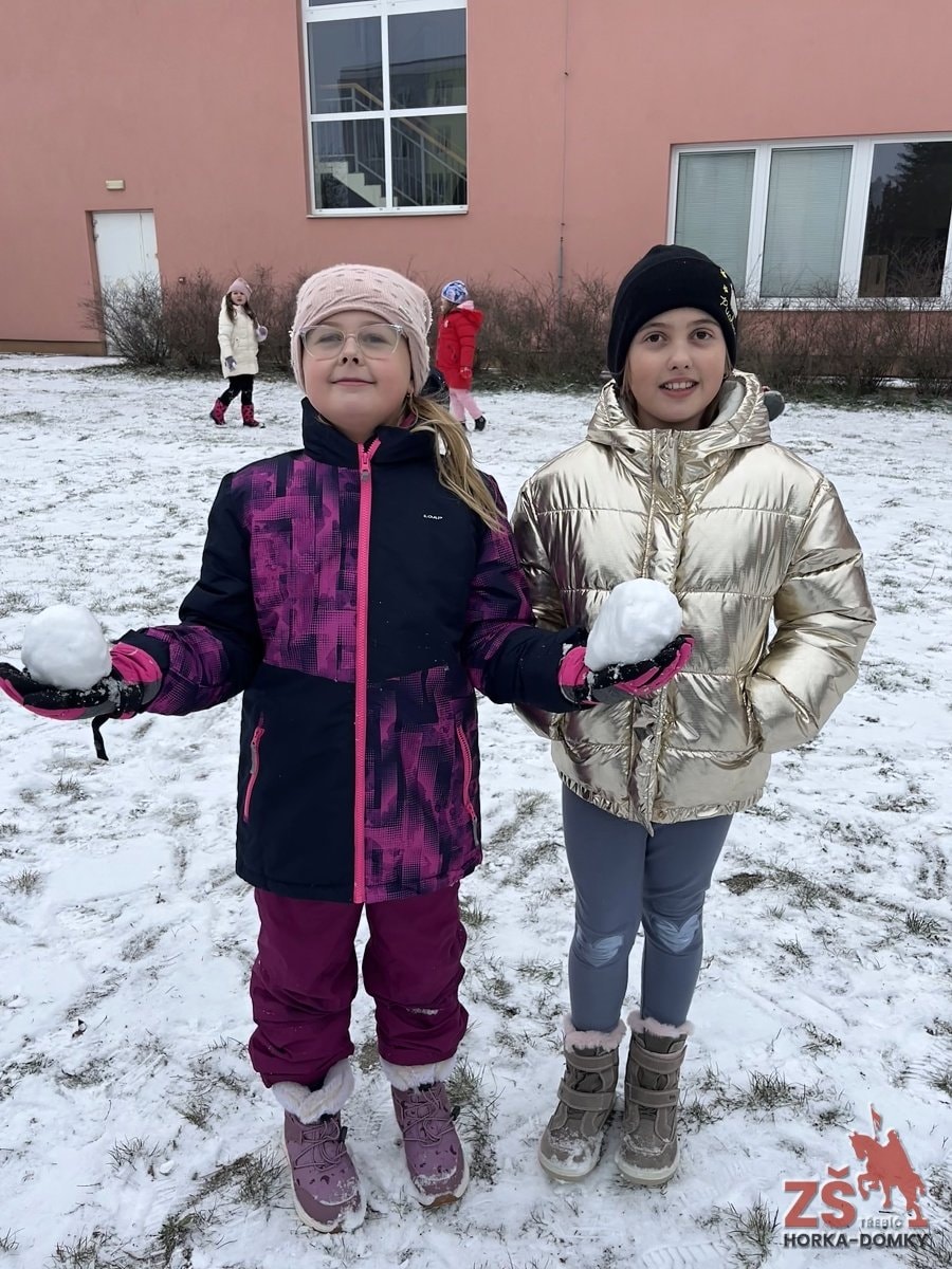 Jakmile se objevila první možnost vyrazit ven do sněhu, naše družina ji okamžitě využila. Děti si naplno užily čerstvou sněhovou nadílku – stavěly sněhuláky, válely koule, koulovaly se a pořádně dováděly v bílé peřině.