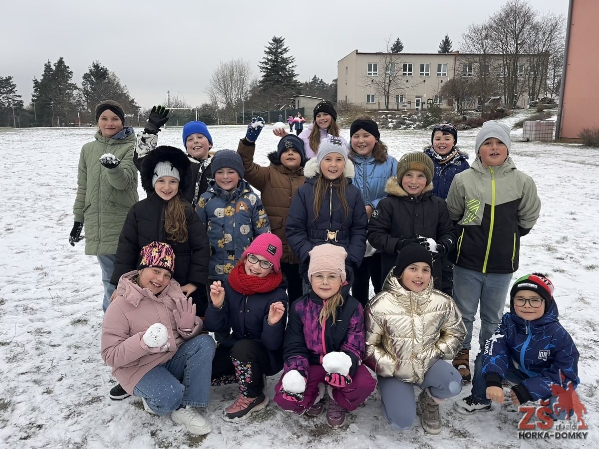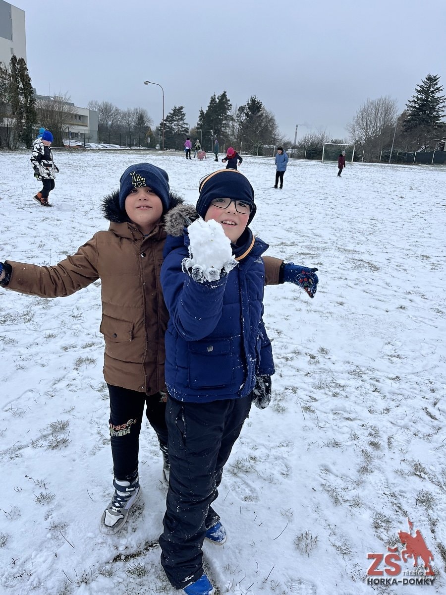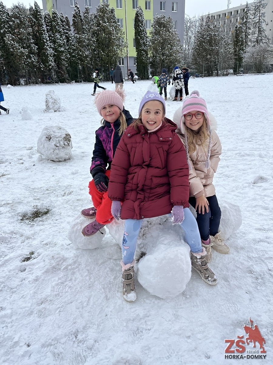 Jakmile se objevila první možnost vyrazit ven do sněhu, naše družina ji okamžitě využila. Děti si naplno užily čerstvou sněhovou nadílku – stavěly sněhuláky, válely koule, koulovaly se a pořádně dováděly v bílé peřině.